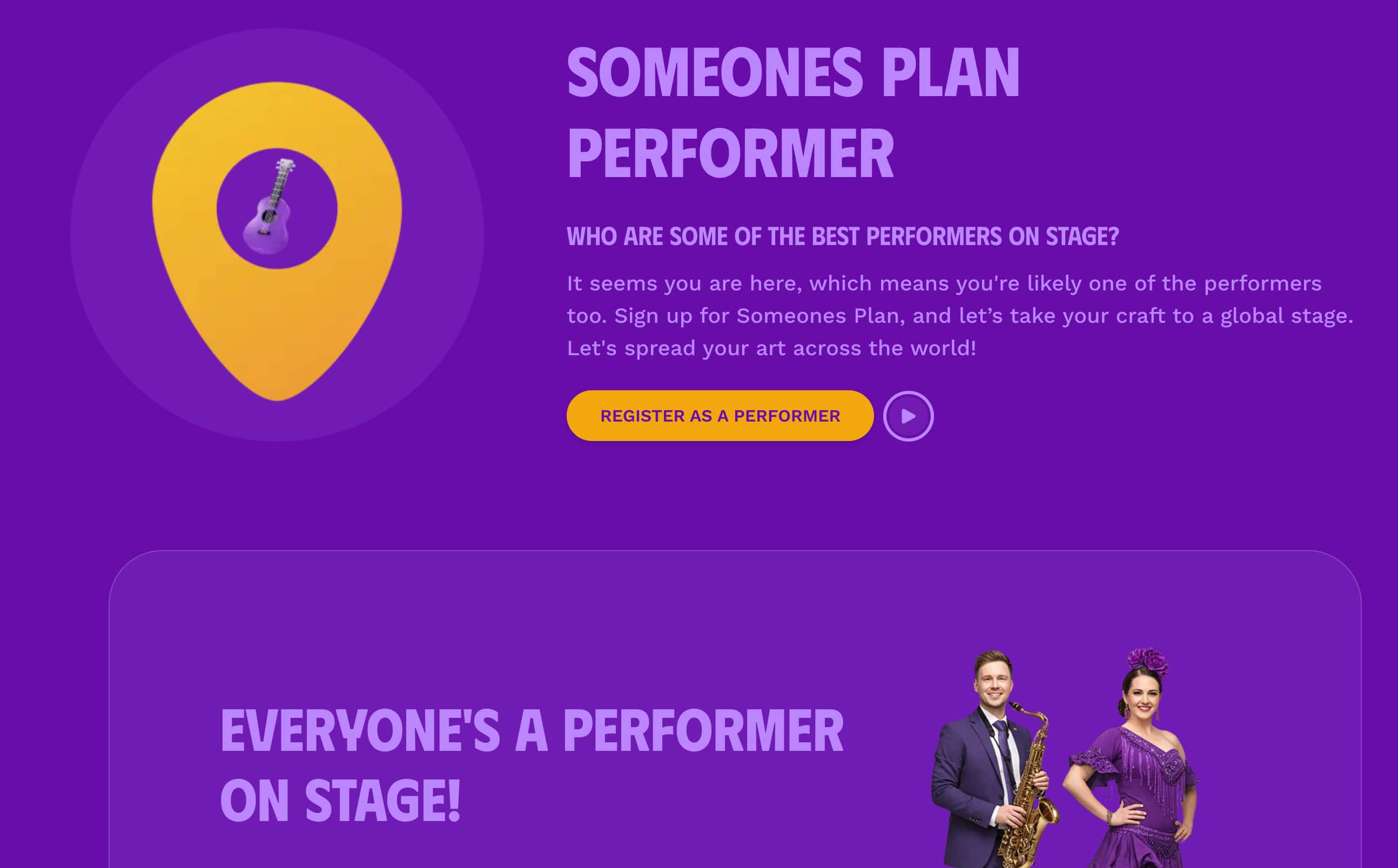 Autonomy tastes sweet. Find event gigs online to stay in control. The schedule belongs to you. The fee belongs to you. The growth belongs to you. Someone’s Plan empowers the artist.